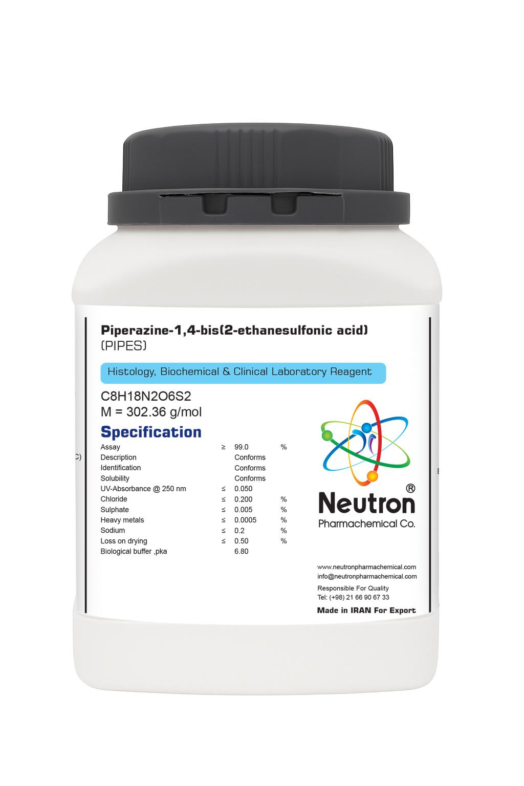PIPES has the chemical formula C₈H₁₈N₂O₄S₂ and is a zwitterionic compound, meaning it has both positive and negative charges at physiological pH. The buffer range of PIPES is approximately 6.1 to 7.5, making it ideal for maintaining a near-neutral pH in biological and biochemical systems. It is highly soluble in water and does not interfere with most biochemical assays, making it a versatile buffer in laboratory settings.