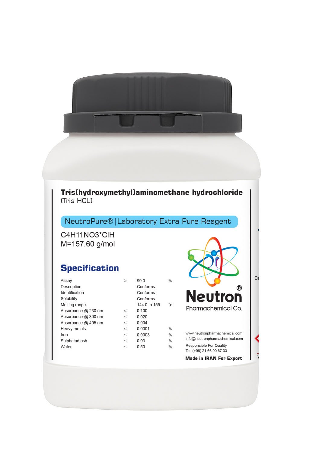 Tris Hydrochloride is produced by reacting tris(hydroxymethyl)aminomethane (Tris) with hydrochloric acid (HCl). The reaction results in the formation of the hydrochloride salt, which is highly soluble in water. It is commercially available as a crystalline powder or in solution form, commonly used in laboratory reagents, buffer preparations, and biochemical assays.